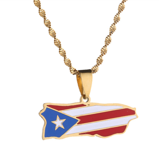 Puerto Rico Flag and Map Necklace for Men and Women.
