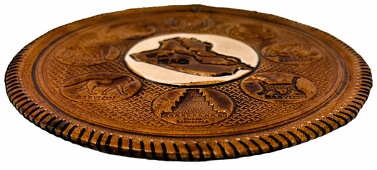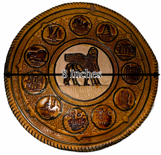 Lamassu surrounded by symbols of the Iraq civilizations. جلد طبيعي