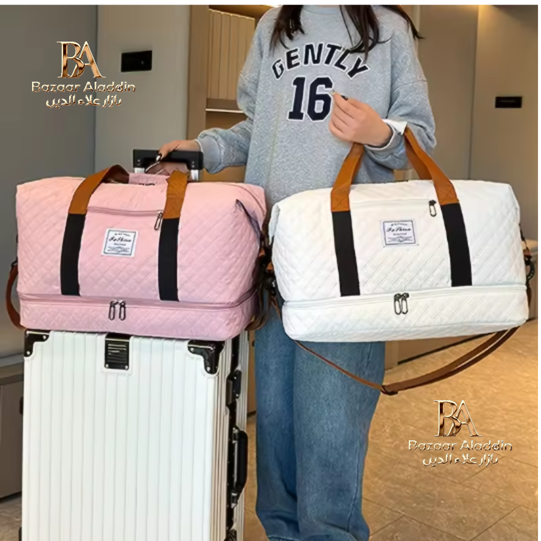 Discover our Folding Travel Bag  or Gym Exercise Training Duffel Bags, meticulously crafted for modern women on the move. Compact yet spacious at 18.5" x 11.02", they blend portability with ample storage. Built to last with durable materials and reinforced stitching, these bags offer reliability for your active lifestyle. Their foldable design saves space, while chic aesthetics ensure they complement any outfit. With various colors available, find your perfect match. Elevate your adventures with our versatile and stylish duffel bags. Experience practicality and elegance combined. Shop now for a fashionable journey ahead.