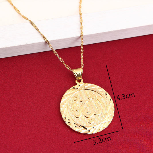 Allah Pendant Necklace Gold color Link Chain Round Fashion.Regular price $9.99 USDRegular priceUnit price per$23.00 USDSale price $9.99 USDSale