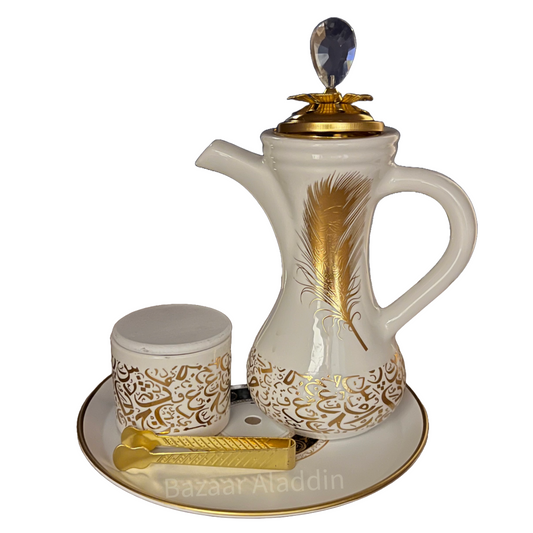 Incense Burners Shaped Like a Dallah with a Glass Finish and Metal Base