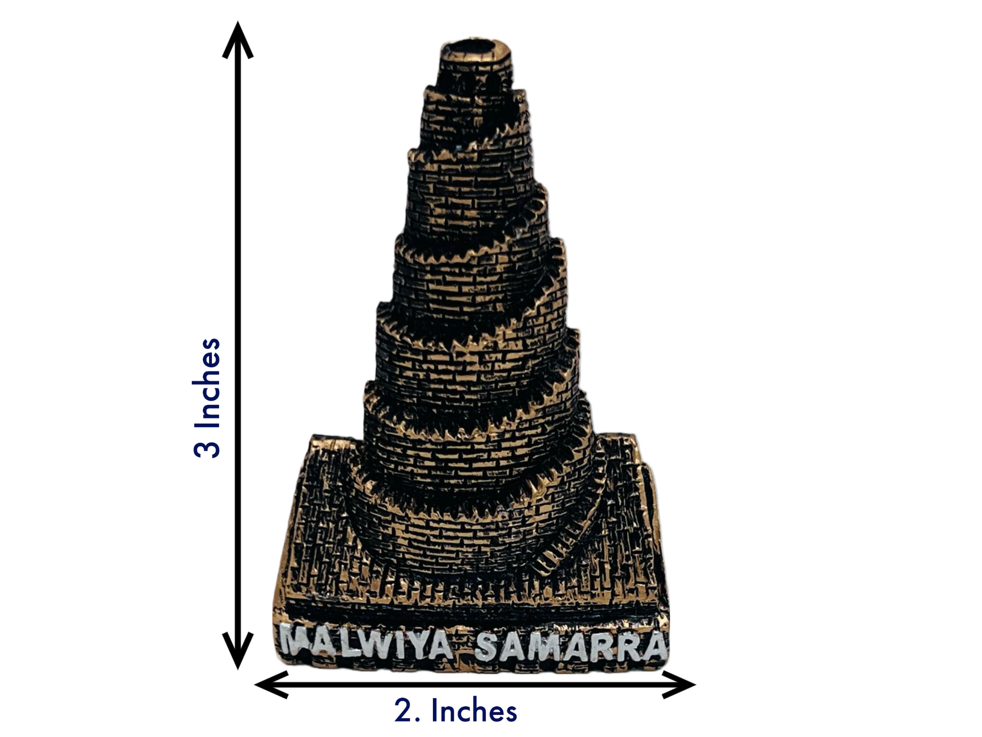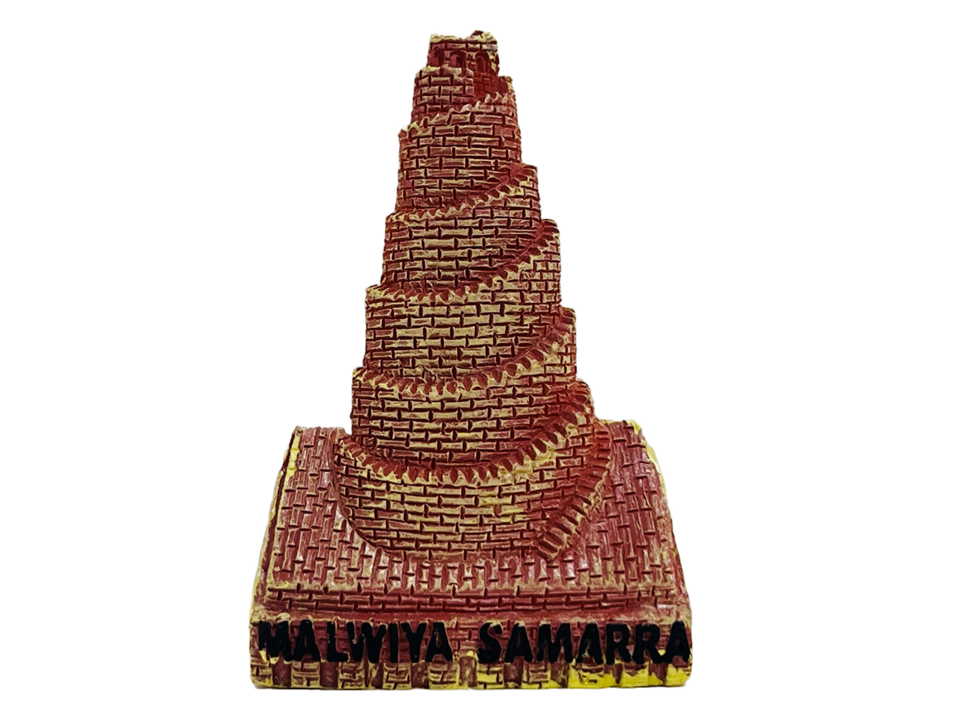 The mosque was the largest in the world; its minaret, the Malwiya Tower, is a spiraling cone 52 meres (171 ft) high and 33 meres (108 ft) wide with a spiral ramp. The Malwiya is located in Samarra north of Baghdad.